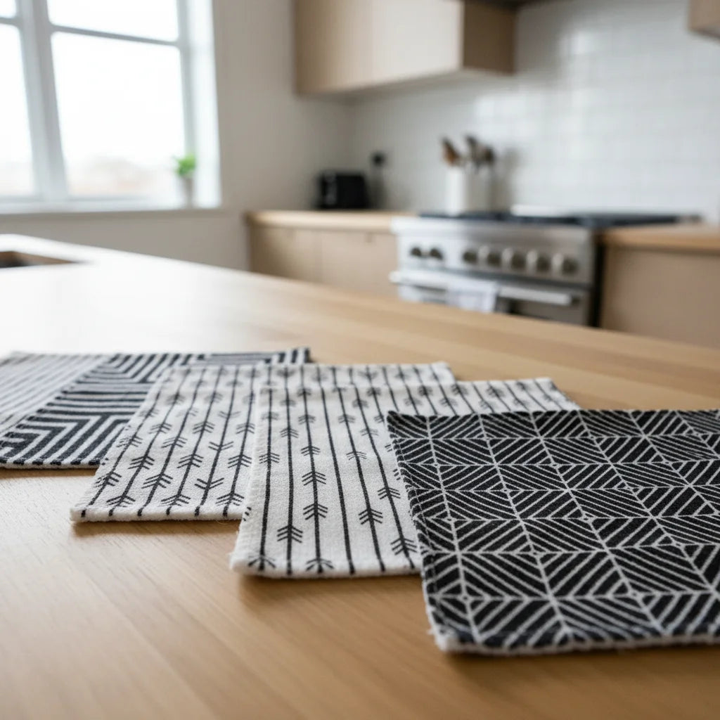 Elevate your space with beautifully patterned dishcloths. Functionality meets sophisticated home aesthetics.